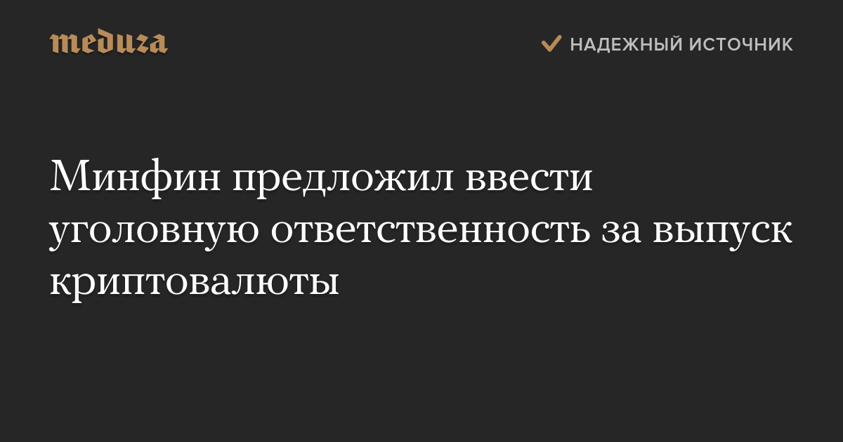 Минфин предложил ввести уголовную ответственность за выпуск криптовалюты