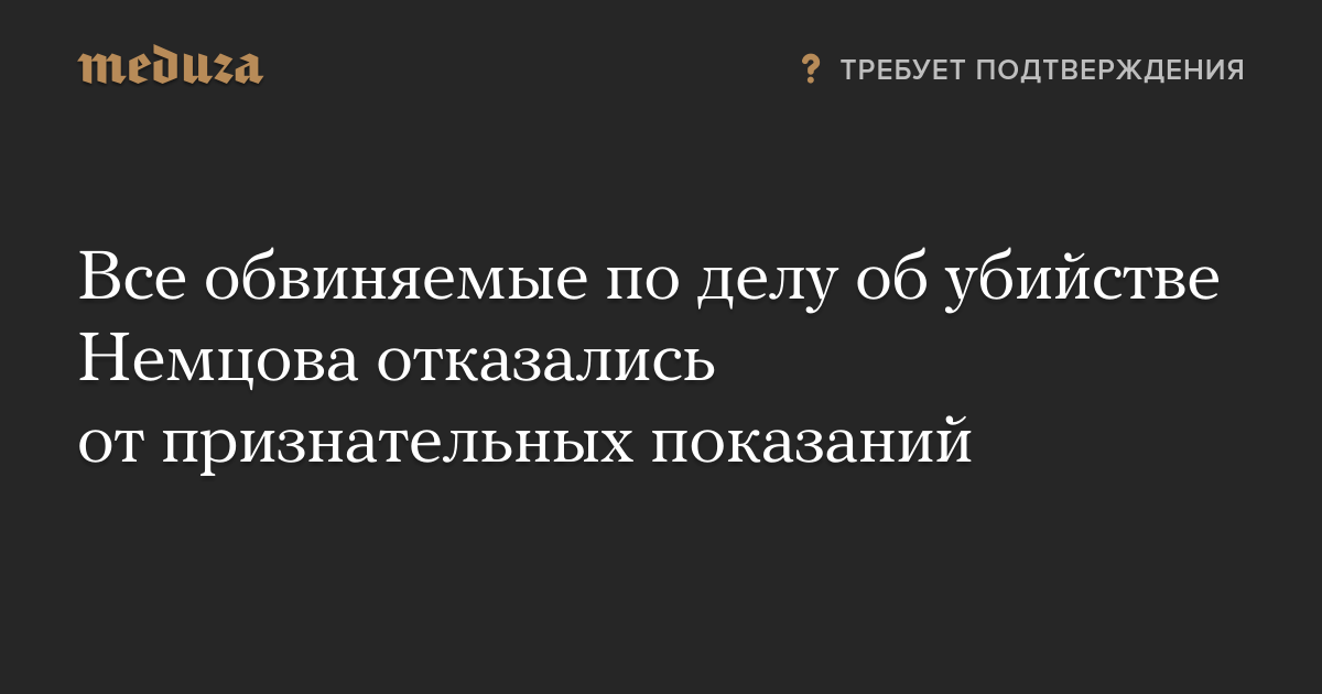 Таким образом, отмечает издание, в деле об убийстве политика не осталось ни одного обвиняемого, который бы признавал вину. Ранее от своих признаний также отказались Заур Дадаев и Анзор Губашев, а другие арестованные с самого начала свою вину не признавали.