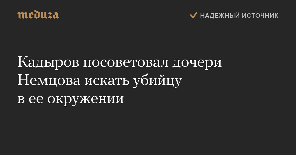 Глава Чечни Рамзан Кадыров заявил, что Жанне Немцовой следует искать убийцу отца в ее окружении, а не требовать от Следственного комитета РФ вызвать его на допрос.