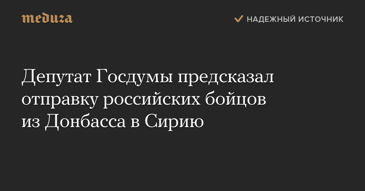Депутат Госдумы предсказал отправку российских бойцов из Донбасса в Сирию