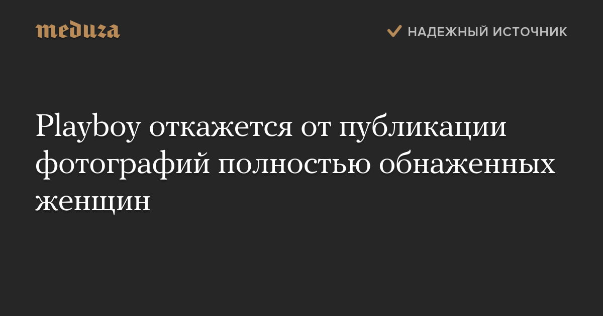 Журнал Playboy с марта 2016 года прекратит публиковать фотографии полностью обнаженных женщин, пишет The New York Times. Отказ от публикации таких фотографий одобрил, по данным газеты, основатель Playboy Хью Хефнер.