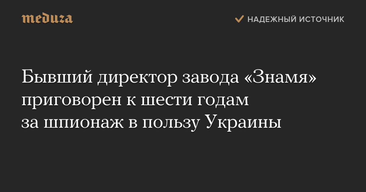 Бывший директор завода «Знамя» приговорен к шести годам за шпионаж в пользу Украины