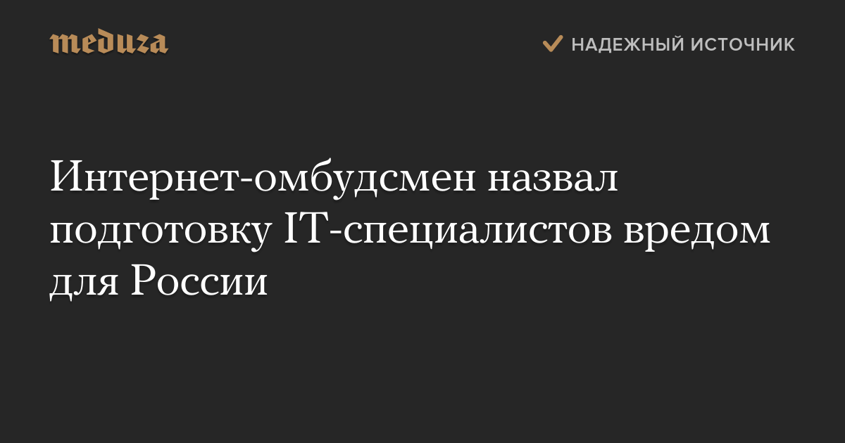 Интернет-омбудсмен назвал подготовку IT-специалистов вредом для России