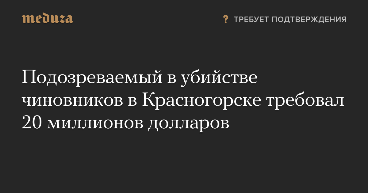 Подозреваемый в убийстве чиновников в Красногорске требовал 20 миллионов долларов