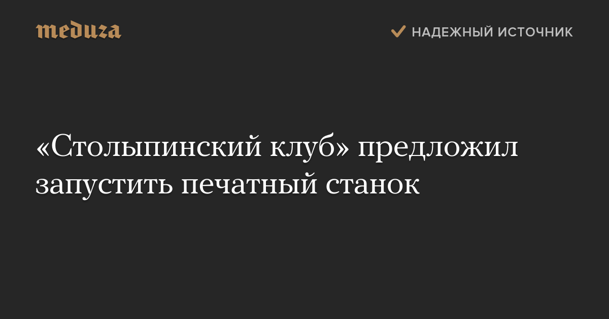 «Столыпинский клуб» предложил запустить печатный станок