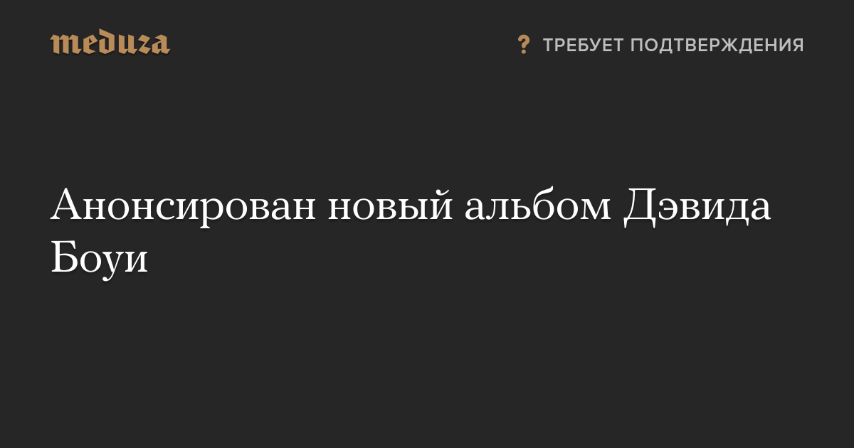 Газета The Times сообщила о скором выходе нового альбома Дэвида Боуи. По ее сведениям, релиз назначен на 8 января 2016 года — день 69-летия музыканта.