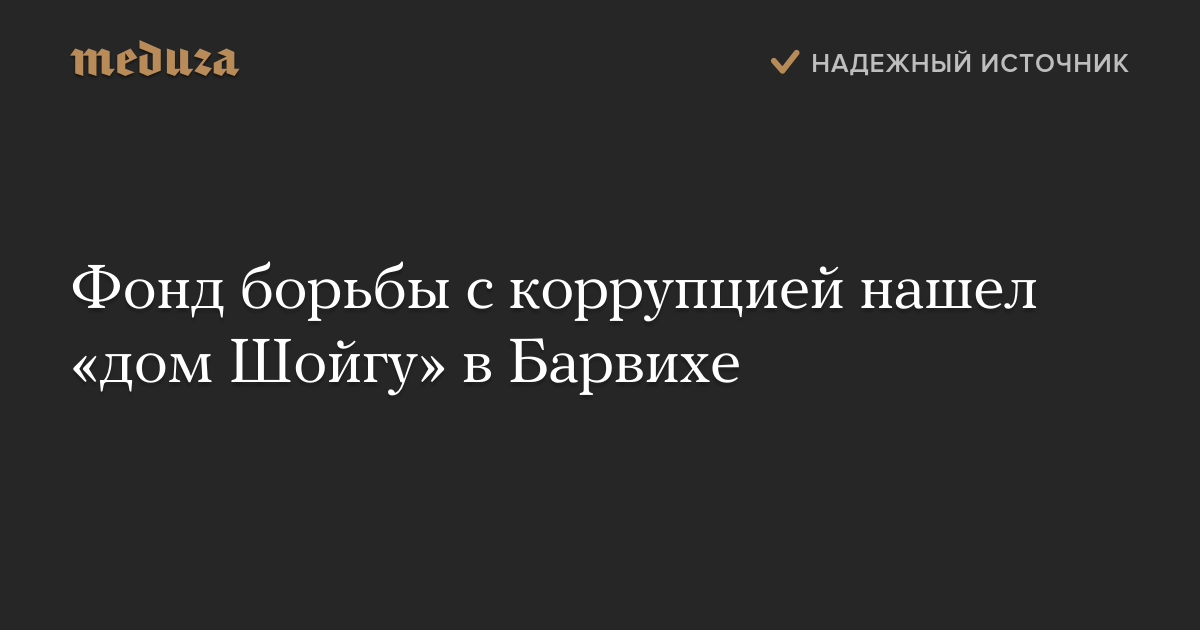 Фонд борьбы с коррупцией нашел «дом Шойгу» в Барвихе