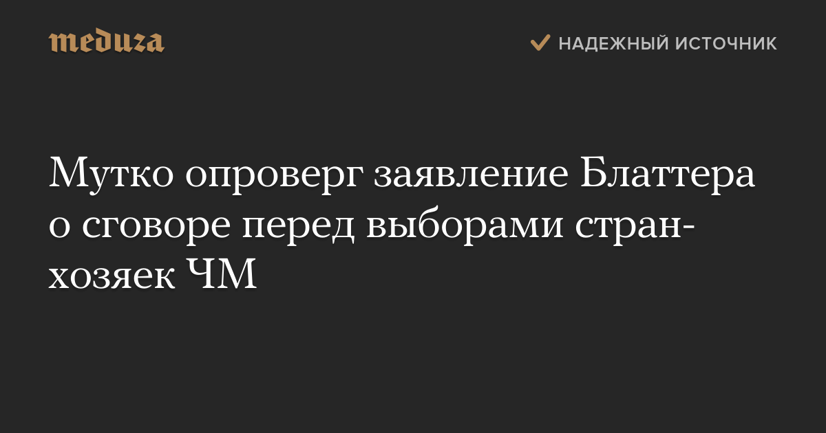 Министр спорта РФ Виталий Мутко опроверг слова президента ФИФА Йозефа Блаттера о «джентльменском соглашении», согласно которому Россия получила право провести чемпионат мира по футболу 2018 года. Блаттер рассказал, что закулисные договоренности были заключены еще до голосования исполкома ФИФА, по итогам которого определились страны-хозяйки чемпионатов 2018 и 2022 годов.