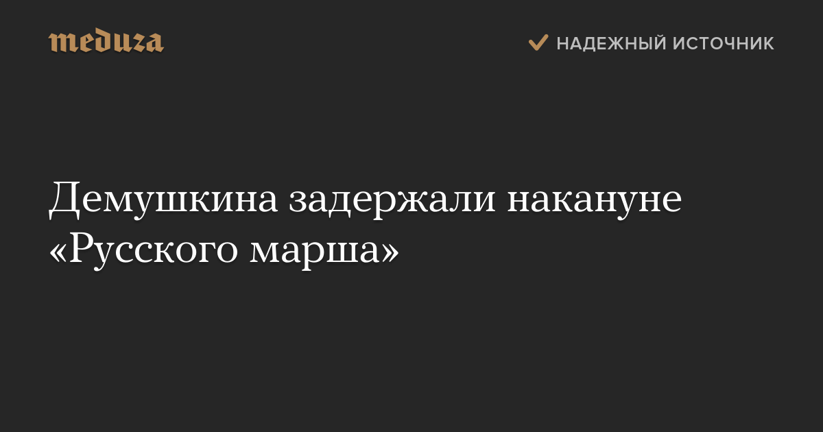 «Я задержан в городе Внуково. Считаю это политически мотивированным, есть приказ не допустить моего участия в «Русском марше», — заявил «Интерфаксу» Демушкин.