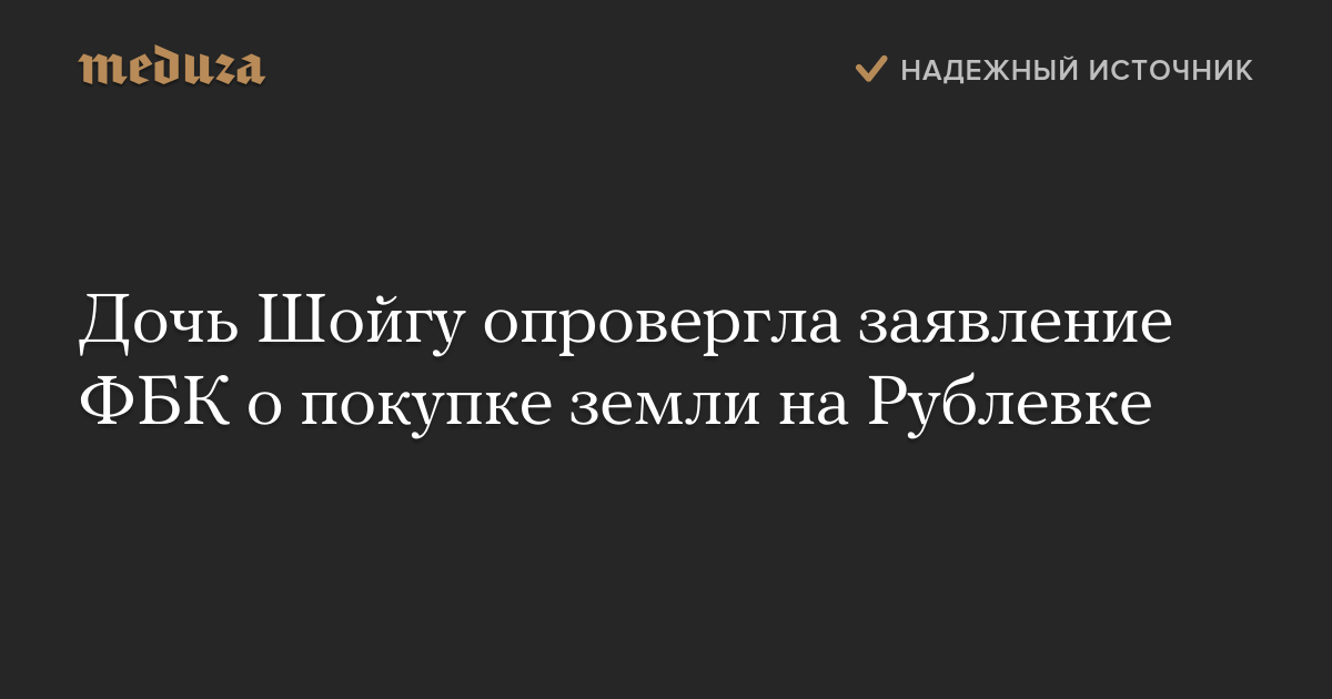 Дочь Шойгу опровергла заявление ФБК о покупке земли на Рублевке
