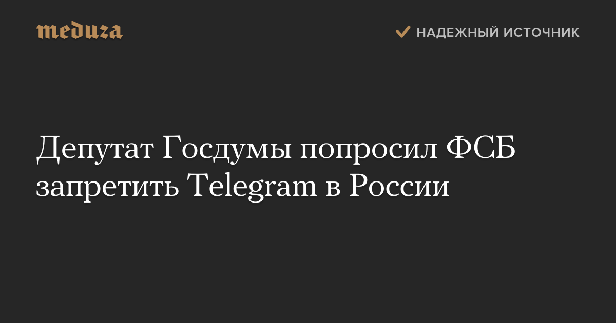 Депутат Госдумы попросил ФСБ запретить Telegram в России