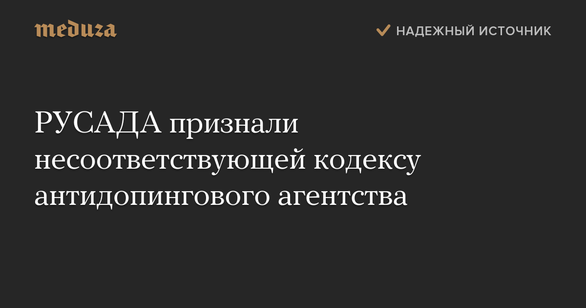 Совет учредителей Всемирного антидопингового агентства (ВАДА) признал Российское антидопинговое агентство (РУСАДА) не соответствующим кодексу организации.