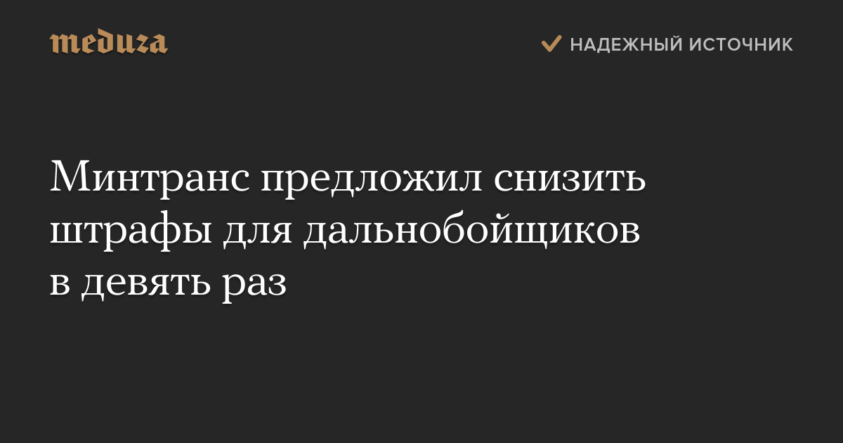 Минтранс предложил снизить штрафы для дальнобойщиков в девять раз
