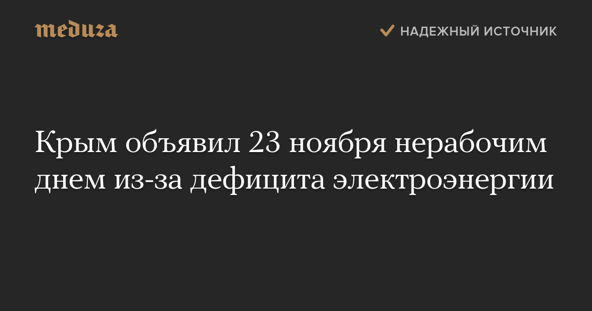 Крым объявил 23 ноября нерабочим днем из-за дефицита электроэнергии