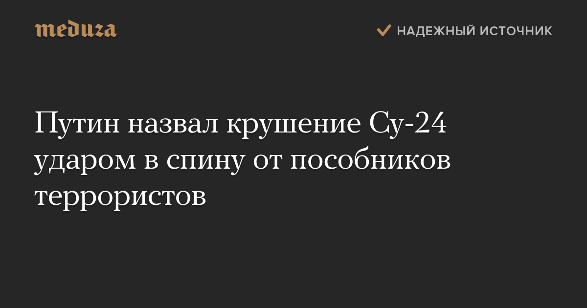 Президент России Владимир Путин назвал крушение российского Су-24 на сирийско-турецкой границе «ударом, который нам нанесли в спину пособники террористов».