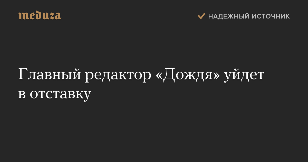 Главный редактор «Дождя» уйдет в отставку