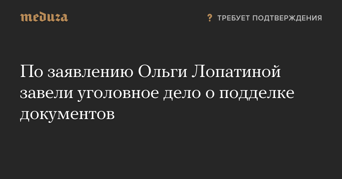 По заявлению Ольги Лопатиной завели уголовное дело о подделке документов