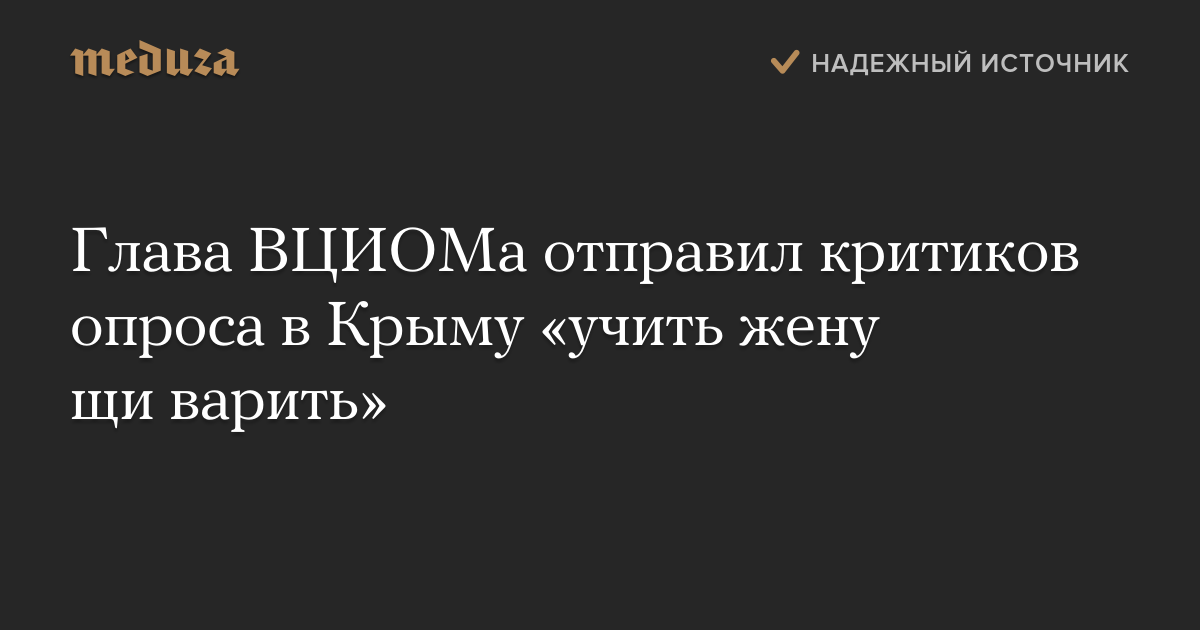 Глава ВЦИОМа отправил критиков опроса в Крыму «учить жену щи варить»