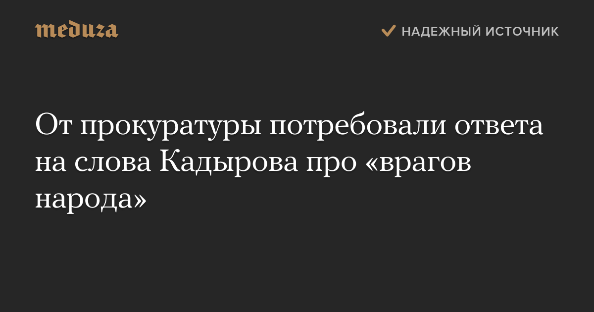 От прокуратуры потребовали ответа на слова Кадырова про «врагов народа»