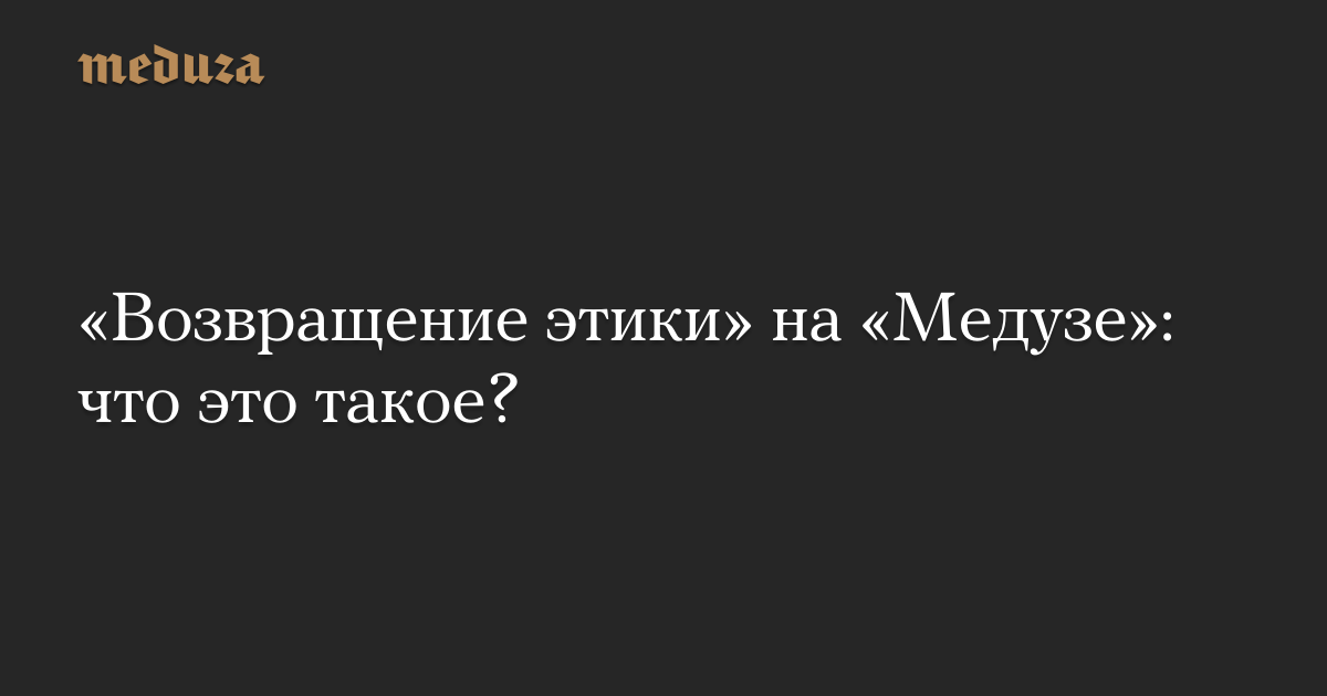 «Возвращение этики» на «Медузе»: что это такое?