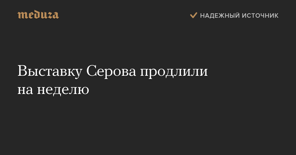 Выставку Валентина Серова, которая проходит в Третьяковской галерее на Крымском валу, продлили на неделю — до конца января. Как заявила директор Третьяковской галереи Зельфира Трегулова, шесть работ должны быть возвращены за границу до 29 января, поэтому их снимут уже в понедельник, 25 января.