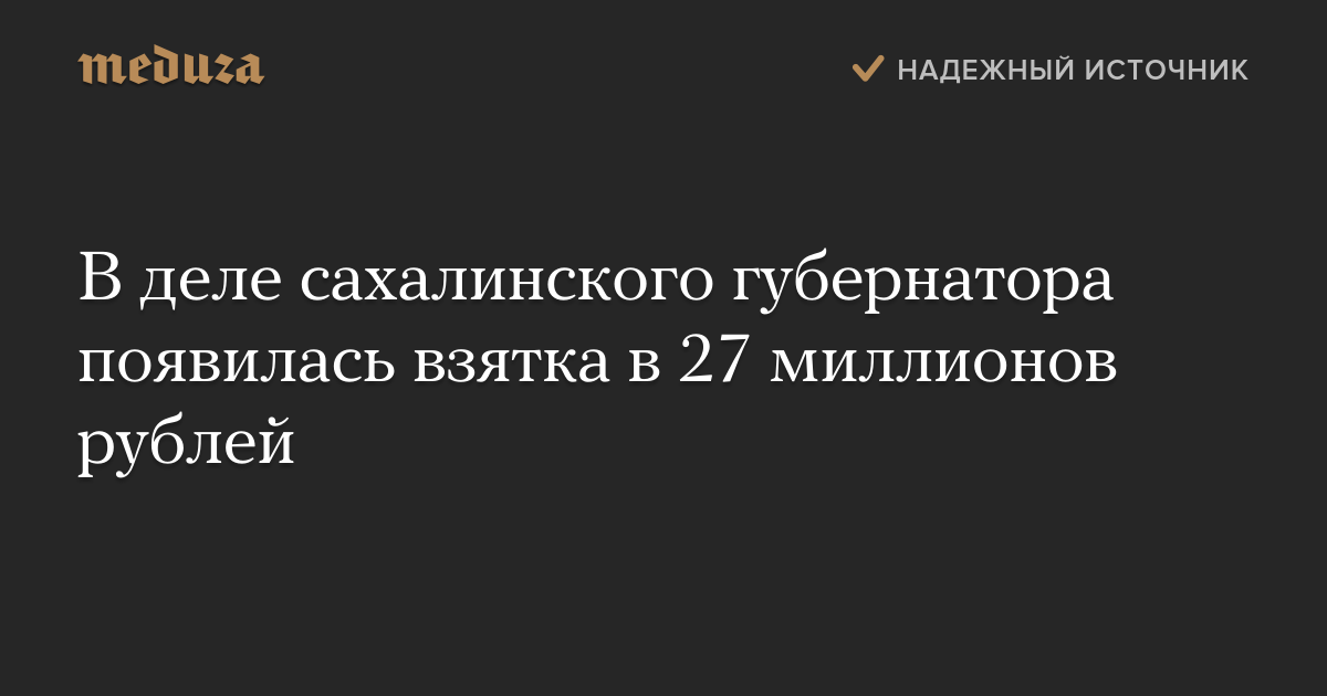 В деле сахалинского губернатора появилась взятка в 27 миллионов рублей