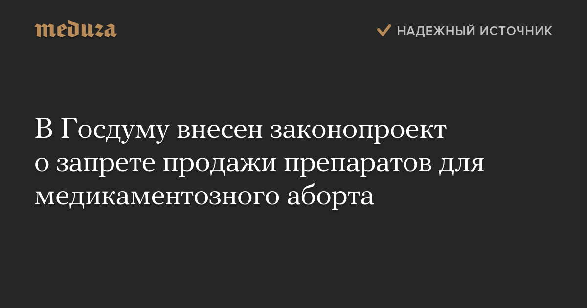 В Госдуму внесен законопроект о запрете продажи препаратов для медикаментозного аборта