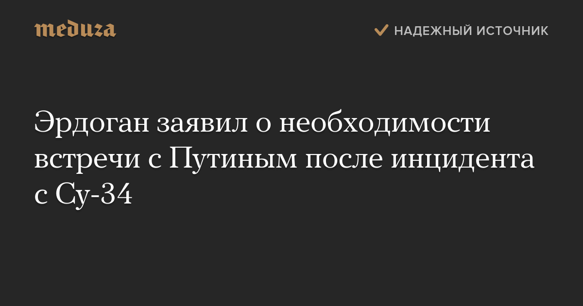 Эрдоган заявил о необходимости встречи с Путиным после инцидента с Су-34