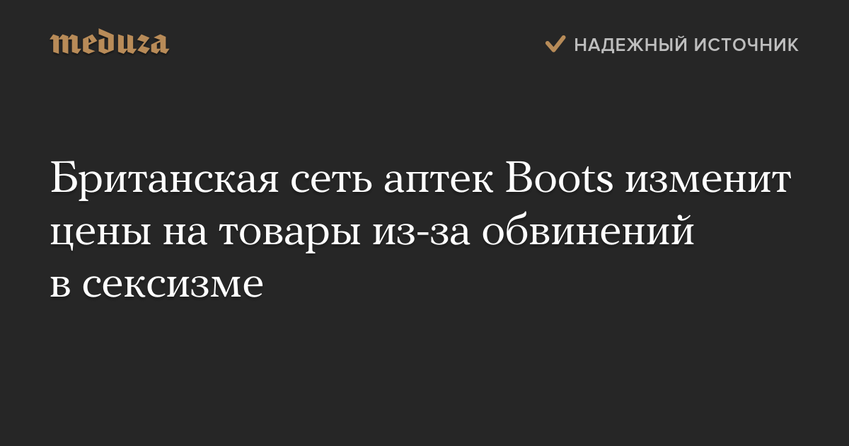 В заявлении на сайте Boots подчеркнула, что никогда не использовала систему ценообразования, которая направлена против женщин (англ. яз.).