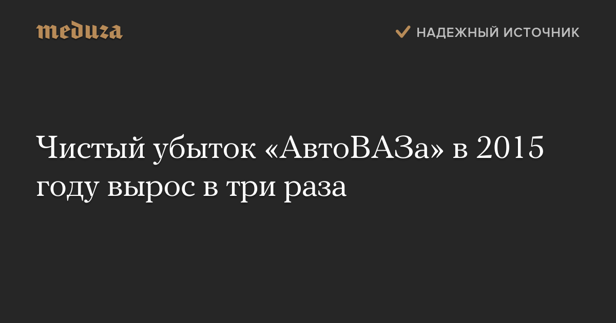 Чистый убыток «АвтоВАЗа» по МСФО в 2015 году вырос втрое по сравнению с 2014 годом и составил 73,851 миллиарда рублей, сообщает «Интерфакс» со ссылкой на опубликованную автоконцерном отчетность.