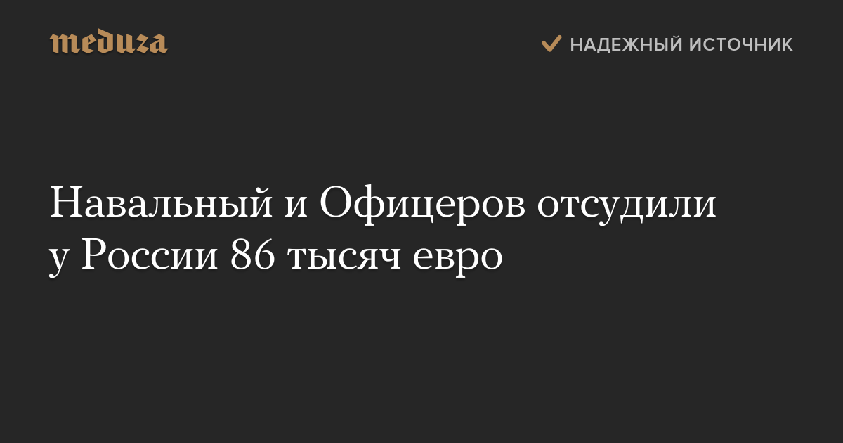 Суд обязал Россию выплатить заявителям по восемь тысяч евро компенсации морального вреда, а также покрыть судебные издержки: в случае с Навальным они составляют 48 тысяч евро, в случае с Офицеровым — более 22 тысяч евро. Таким образом, общая сумма компенсации составит более 86 тысяч евро.