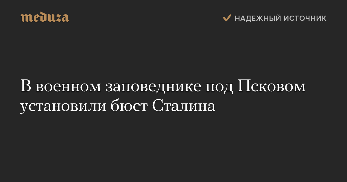 В Военно-историческом музее-заповеднике в деревне Холматка Островского района Псковской области установили бюст Иосифа Сталина. Как сообщает «Псковская лента новостей», монумент был установлен 22 февраля, деньги на него предоставило Российское военно-историческое общество.