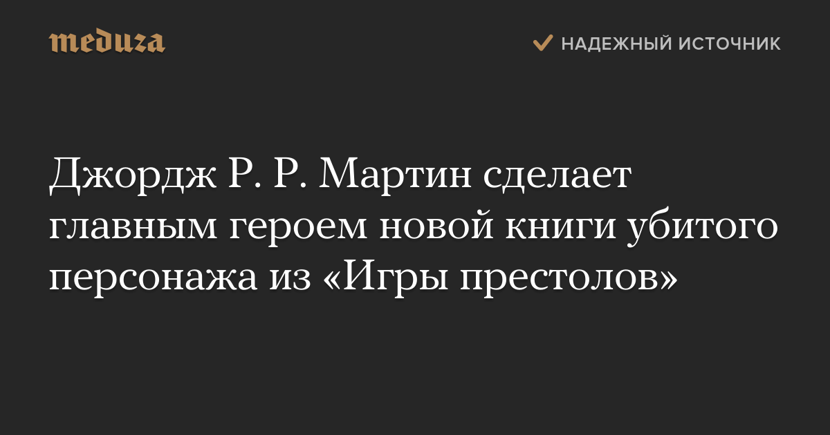 Джордж Р. Р. Мартин сделает главным героем новой книги убитого персонажа из «Игры престолов»