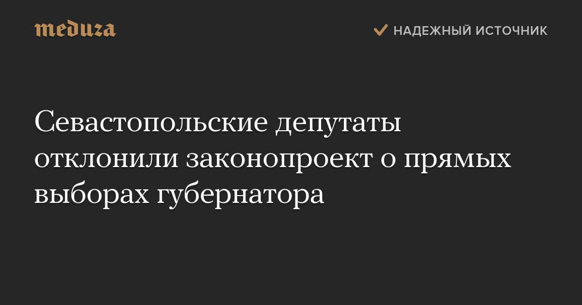 Законодательное собрание Севастополя отклонило законопроект о прямых выборах губернатора. За документ при рассмотрении в первом чтении проголосовали 13 депутатов из 24. Для принятия законопроекта было необходимо, чтобы он собрал не менее 16 голосов