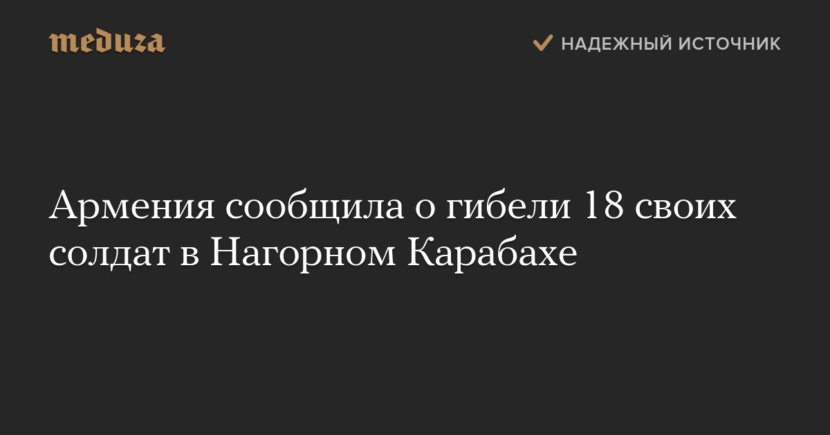 Армения сообщила о гибели 18 своих солдат в Нагорном Карабахе