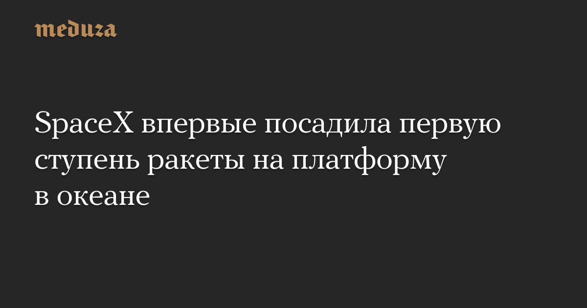 SpaceX впервые посадила первую ступень ракеты Falcon 9 на платформу в океане. До этого компании удавалось посадить первую ступень только на суше; все четыре попытки посадить ее на платформу в океане заканчивались неудачами.