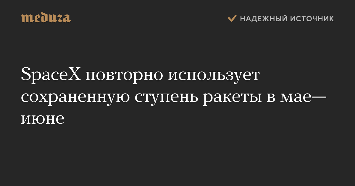 SpaceX повторно использует сохраненную ступень ракеты в мае-июне