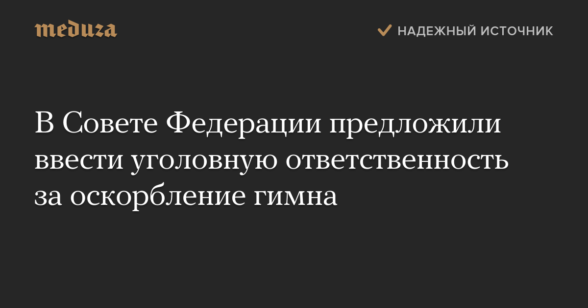 В Совете Федерации предложили ввести уголовную ответственность за оскорбление гимна