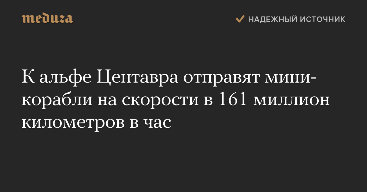 К альфе Центавра отправят мини-корабли на скорости в 161 миллион километров в час