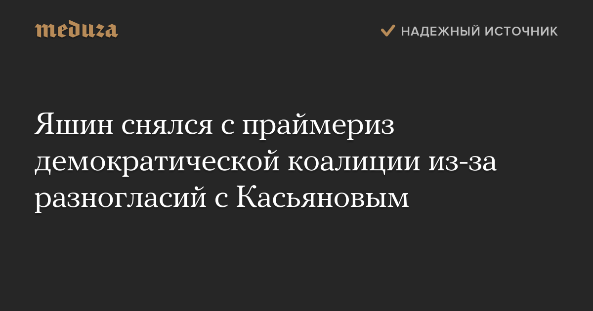 Яшин снялся с праймериз демократической коалиции из-за разногласий с Касьяновым