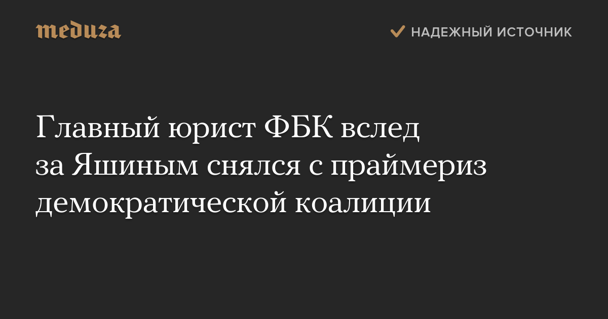 Главный юрист ФБК вслед за Яшиным снялся с праймериз демократической коалиции