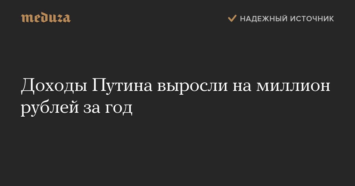 Доходы Путина выросли на миллион рублей за год