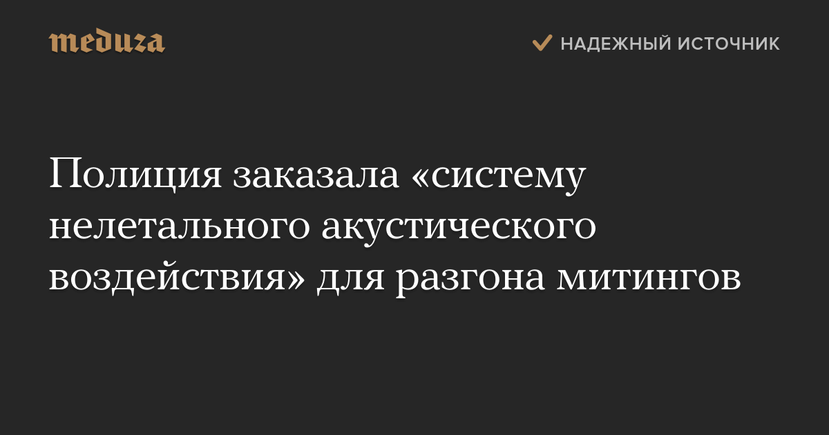Полиция заказала «систему нелетального акустического воздействия» для разгона митингов