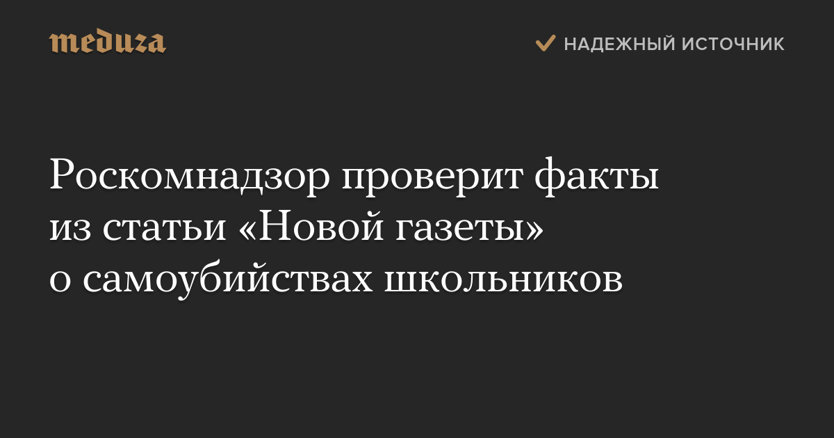 Роскомнадзор проверит факты из статьи «Новой газеты» о самоубийствах школьников