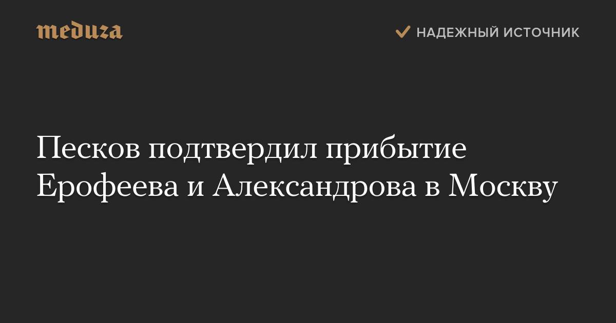 Ерофеев и Александров, по словам Пескова, были доставлены в Москву самолетом авиакомпании «Россия».