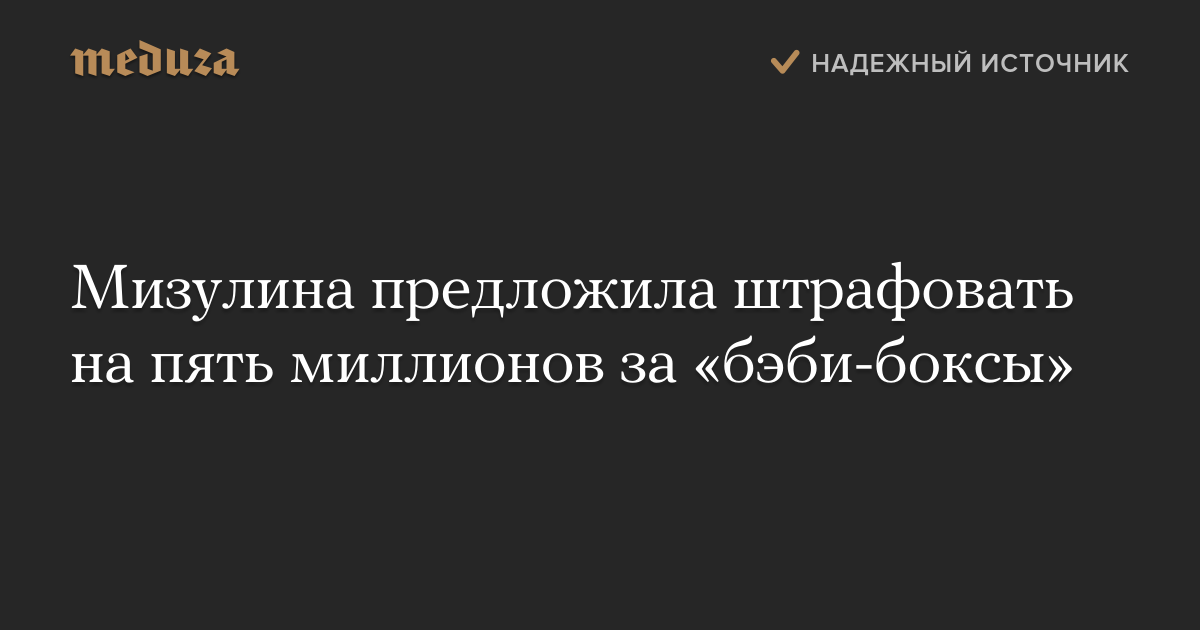 Мизулина считает необходимым дополнить Кодекс РФ об административных правонарушениях статьей, регламентирующей наказание за «создание юридическим лицом условий для анонимного оставления детей после их рождения, выразившееся в организации специализированных мест для анонимного оставления ребенка после его рождения, содержании таких мест или в предоставлении помещений для указанных целей».