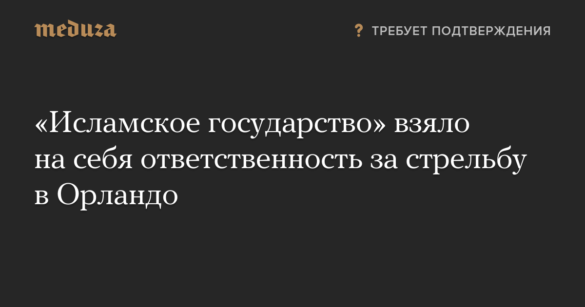 Организация «Исламское государство» (признана террористической и запрещена в РФ) взяла на себя ответственность за стрельбу в гей-клубе Pulse в Орландо, США.