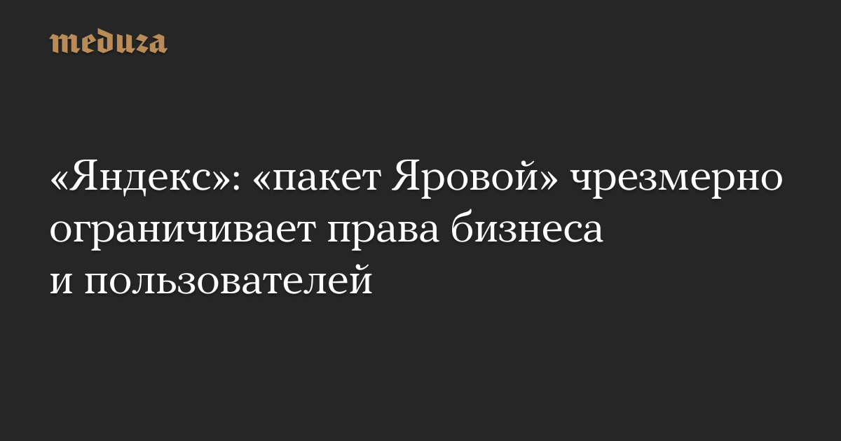 Компания «Яндекс» считает, что требования к интернет-компаниям, содержащиеся в так называемом «пакете Яровой», приведут к «чрезмерному ограничению прав как бизнеса, так и пользователей». Об этом «Медузе» сообщили в пресс-службе компании.