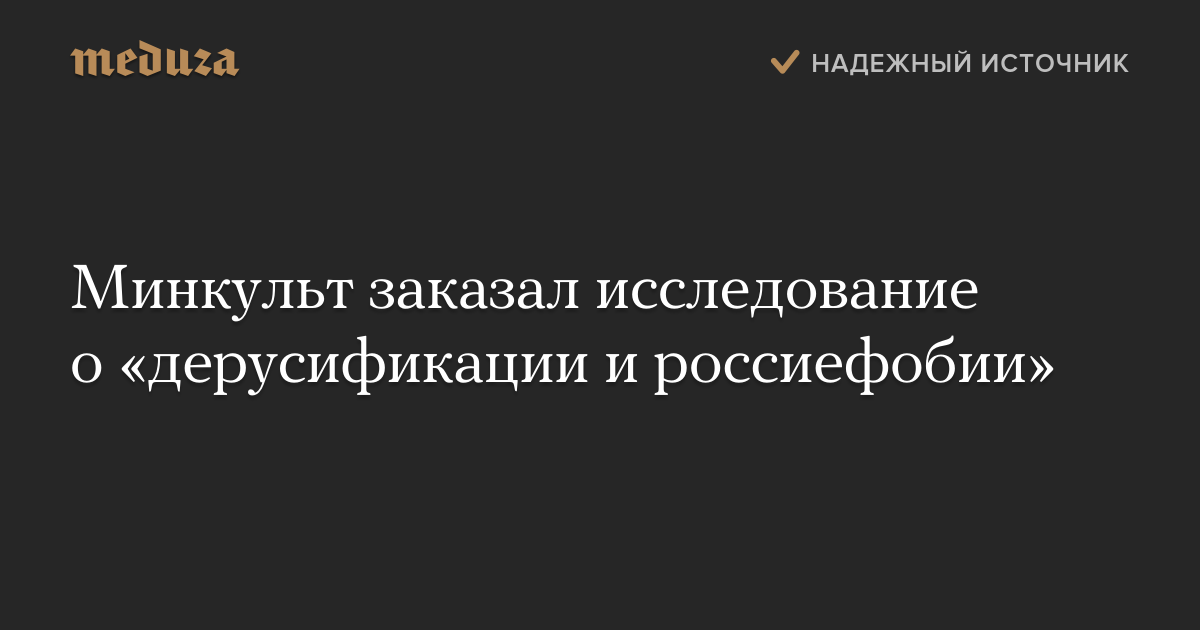 Министерство культуры разместило на портале госзакупок заказ на проведение исследования о «технологиях дерусификации (россиефобии)» и том, каким должен быть государственно-управленческий ответ на эти технологии.