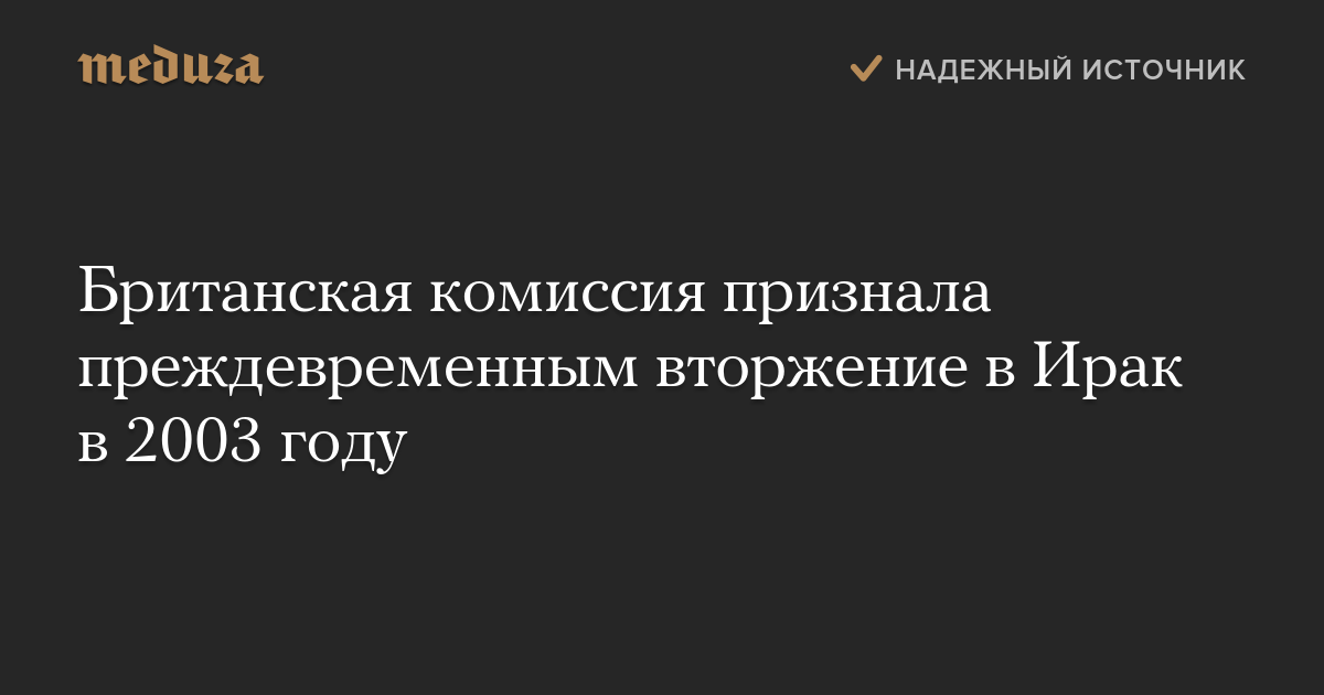 Специальная британская комиссия по расследованию обстоятельств вторжения в Ирак в 2003 году пришла к выводу, что военная операция, в которой участвовала Великобритания, была начата преждевременно.